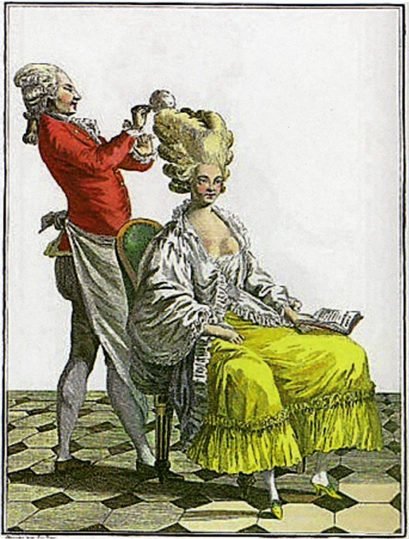 His hairdo’s were often accessorized with objects and decorations depicting current events. He took product usage to an extreme, using wire forms, wool, pomade and powder to create the gravity-defying, impractical designs.